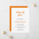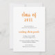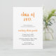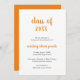 Cartão de anúncio de graduação minimalista com um design simples e clássico com "classe de ano" e o nome do formando em um guiamento laranja grosso sobre fundo branco. A parte de trás é laranja sólido. Um cartão de anúncio tradicional com um talento moderno para um formando feminino.