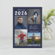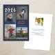 Anúncio de formatura editável em azul-marinho e branco com 5 fotos (4 na frente e 1 no verso) e o nome do graduado em uma fonte de letra manuscrita. O ano da turma pode ser alterado, bem como o estilo da fonte do texto, cor, tamanho e posicionamento. O verso tem um campo de texto personalizado opcional para incluir informações adicionais sobre o graduado (exclua o texto de exemplo nesse campo se não desejado). ASSISTÊNCIA: Para obter ajuda com modificação ou personalização do design, alteração de cor, redimensionamento ou transferência do design para outro produto, entre em contato com o designer ANTES de fazer o pedido via Zazzle Chat ou e-mail makeitaboutyoustore@gmail.com.