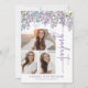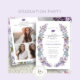 Convite de Formatura com Floral Roxo. Anuncie sua formatura do ensino médio ou faculdade com estilo com este cartão rústico moderno, lindamente elaborado, apresentando três espaços para fotos na frente, rodeados por lilases elegantes em água, tons suaves de roxo, rosas lavanda e flores silvestres azuis com folhagem exuberante, e um padrão coordenado no verso. Celebre seu marco na primavera ou verão personalizando o texto, estilos de fonte, cores e tamanhos para criar um souvenir com apelo atemporal.