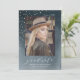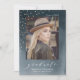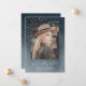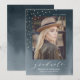 Convite de formatura de foto moderno e sofisticado com a foto do(a) graduado(a) com uma fonte de letra elegante e confetes de folha de ouro falso contra um fundo de aquarela azul-marinho. Personalize o convite de formatura de aquarela com o ano de formatura, nome e escola do(a) graduado(a).