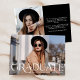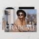 Anúncio de formatura moderno com a foto horizontal do formando em toda a frente com a palavra "Graduate" exibida em uma elegante sobreposição de texto branco. Personalize a frente do simples anúncio de formatura com o nome do formando e o ano de graduação. O anúncio se inverte para exibir uma foto adicional com sua mensagem pessoal. O anúncio de formatura com 2 fotos é perfeito tanto para graduados do ensino médio quanto para graduados universitários.