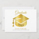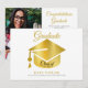 Com um elegante chapéu de formatura dourado, este cartão de convite de formatura moderno pode ser personalizado com os detalhes da sua celebração e uma foto especial no verso. Criado por Thisisnotme©
