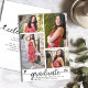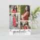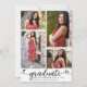 Sinta-se orgulhoso, alegre e mostre esse marco do seu graduado favorito! Envie este anúncio de colagem de 4 fotos personalizado, feminino, deslumbrante, simples e moderno para um evento inesquecível. Um visual divertido e alegre com escrita à mão em preto e corações fofos e alegres, junto com o nome dela, ano de formatura, escola e 4 fotos de sua escolha sobre um fundo branco limpo. Escrita em preto, corações e texto sem serifa sobre um fundo branco no verso. Personalize o texto personalizado com o nome do seu graduado, escola e ano de formatura na frente. No verso, adicione sua nota pessoal, próxima escola que ela irá frequentar, etc. Convites, cartões de agradecimento, topos de gorro, guardanapos, pratos e outros itens de graduação combinando também estão disponíveis nesta coleção moderna e estilosa. Garantido para adicionar diversão estilosa à ocasião especial deles!