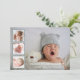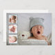 Cartão de Anúncio de Nascimento Moderno com uma colagem de fotos com uma grande imagem de fundo e três fotos quadradas à esquerda. O nome do bebê e as estatísticas de nascimento estão no fundo da foto de fundo. As costas têm a sua mensagem personalizada em azul empoeirado. Este simples, mas elegante Cartão de Anúncio de Nascimento é uma forma excelente de compartilhar suas fotos favoritas do seu bebê recém-nascido.