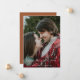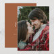 Com todas as restrições da pandemia e protocolos de segurança, notifique seus amigos e entes queridos sobre o adiamento do seu casamento com este cartão de anúncio de foto de casamento moderno minimalista dizendo que “o amor é paciente” em letras de caligrafia e tema de cor terracota.