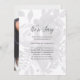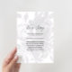 Este aviso de adiamento de casamento floral roxo e branco elegante é uma maneira simples e doce de informar aos convidados que a cerimônia foi adiada devido a eventos imprevistos. Este lindo design apresenta um adorável script de caligrafia "sentimos muito" e flores de aquarela na frente, e uma foto completa na parte de trás do cartão.