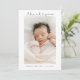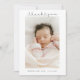 Um anúncio simples mínimo de 2 fotos de nascimento de bebê apresentando um obrigado com seu nome de bebê e data de nascimento, e outra foto e mensagem de obrigados na parte traseira do cartão. Substitua essas fotos de exemplo por suas próprias fotos adoráveis de bebês. Você pode manter ou apagar o pequeno coração rosa abaixo da foto. Você pode pedir impressões, download digital ou ambos!