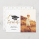 Personalize este na moda e cartão de graduação moderno com seu nome e foto. Apresentando um boné de gradação com a torneira de ouro e um roteiro de pincel moderno que diz "Formando" em ouro e o ano no boné. O lado inverso tem um padrão de pontos de polca dourados correspondente.
