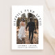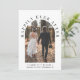 Elegante anúncio de casamento íntimo ou privado e convite de recepção. A frente apresenta a foto do seu dia de casamento em uma moldura arqueada e "Felizes para Sempre" em tipografia elegante. Adicione seus primeiros nomes, data e local do casamento. No verso, personalize o anúncio do casamento e os detalhes da recepção e adicione seus nomes em uma caligrafia semelhante a uma assinatura.