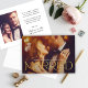 Este moderno e elegante cartão de anúncio de foto de casamento apresenta "Casado" em tipo serifado de folha de ouro falso exclusivo sobre a foto do seu casamento. O verso do cartão inclui uma segunda foto em formato vertical e texto simples que pode ser personalizado com os detalhes do seu casamento e votos, assinados com o seu novo nome de casado. Observe que as cores preto e branco podem ser modificadas.