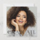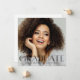 Cartões modernos e elegantes, quadrados de anúncios de graduação em "Foto", com design elementos escuros transparentes, modernos, em estilo estilo de ler "FORMANDO", com tipografia minimalista. A foto do formando na frente da placa destaca a superfície inteira. O verso do cartão oferece espaços de texto personalizados para informações sobre sua graduação e futura jornada. Perfeito para mais velho de segundos graus, universitários e universitários.