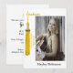 Anúncio de foto de formatura em cores escolares douradas. Criado com borla dourada na frente e destaque de gorro de graduado dourado no verso. Todo o texto na frente e no verso já está formatado e pronto para seus próprios detalhes de texto e foto. Outras cores disponíveis neste mesmo design. (Crédito da foto placeholder: imagem Pixabay por Lorri Lang)