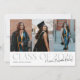 Cartão de foto de anúncio de formatura moderno e elegante com 3 fotos na frente e 1 no verso. O texto diz "Turma de 2026" com seu nome em fonte cursiva sobreposta. Adicione o nome do formando, informações e mensagem para personalizar este cartão.