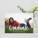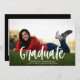 Este anúncio de graduação apresenta uma foto de quadro de cheio e um "Formando" moderno de roteiro em branco. No verso há outra foto e um convite para uma comemoração de formatura.