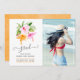 Anúncio de graduação de praia em aquarela com hibisco rosa e laranja projetado para ser rápido e facilmente personalizado de acordo com as especificações de seu evento. Uma foto de formato de retrato é recomendada.