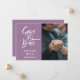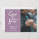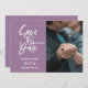 Escrito branco moderno, Salva o Cartão com fotos de Data do Casamento. Recursos, fundo poeirento de cor de lavanda chic e modelo de foto de solteiro na frente.