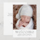 Um simples anúncio de nascimento moderno para compartilhar a notícia do seu bebê recém-nascido. O cartão neutro em termos de gênero é perfeito para o seu bebê menino ou menina. Ele apresenta uma foto na frente e uma mensagem de boas-vindas e é personalizado com o nome do bebê, data de nascimento, estatísticas de nascimento e uma mensagem pessoal da Mamãe e do Papai