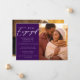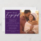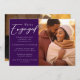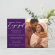 Este simples cartão de anúncio de noivado do casal roxo real apresenta elegante escrita branca para um casamento numa noite de inverno. Convites de festa de noivado com tipografia minimalista e uma segunda fotografia no verso.