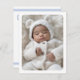Cartões de agradecimentos branco ou qualquer anúncio de nascimento a cores com sua foto personalizada na frente. Mensagem personalizável no verso com bordas azuis leves e poeirentas no topo e na parte inferior. Você pode alterar todas as cores, mover e redimensionar elementos com a ferramenta design.