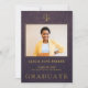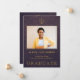 O visual moderno e elegante e roxo de couro índio e preto e o modelo da graduação da faculdade de direito do ouro com sua foto e texto personalizados.