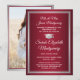 Compartilhe a alegria de um segundo grau ou formandos com estes anúncios personalizados em vermelho, branco e prata. (DICA DE IMAGEM: Uma maneira fácil de centralizar uma imagem exatamente como você deseja é recortá-la antes de carregá-la no site do Zazzle.) Este modelo formal inclui nomes de pais e formandos, assim como qualquer texto de sua escolha, como detalhes de convite de festas, honras especiais, título de grau, citação de inspiração favorita, informações de contato do formando, planos educacionais futuros ou nova posição de emprego. Todo texto é simples de personalizar. Design apresenta um fundo vermelho moderno, falso borda prateada e boné de conselho de morteiro, caligrafia elegante, tipografia tradicional e uma foto de sua escolha, como uma fotografia de mais velho ou imagem da cerimônia de início. Por favor, note que prata é cor impressa, não é folha metálica. Estes cartões de anúncio de graduação são uma maneira moderna e chique de compartilhar sua celebração especial com a família e os amigos. Parabéns ao formando!