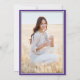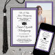 Compartilhe a alegria de um segundo grau ou formandos com estes anúncios personalizados em roxo, branco e preto. (DICA DE IMAGEM: Uma maneira fácil de centralizar uma imagem exatamente como você deseja é recortá-la antes de carregá-la no site do Zazzle.) Este modelo formal inclui nomes de pais e formandos, assim como qualquer texto de sua escolha, como detalhes de convite de festas, honras especiais, título de grau, citação de inspiração favorita, informações de contato do formando, planos educacionais futuros ou nova posição de emprego. Todo texto é simples de personalizar. Design apresenta um fundo branco moderno, boné de conselho de argamassa preta, caligrafia elegante de script, tipografia tradicional e uma foto de sua escolha, como uma foto de mais velho ou imagem da cerimônia de início. Estes cartões de anúncio de graduação são uma maneira moderna e chique de compartilhar sua celebração especial com a família e os amigos. Parabéns ao formando!