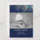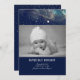 Anúncio de nascimento de marinho e de um bebê recém-nascido dourado com estrela cadente de cintura e céu noturno estrelado