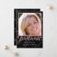 Este anúncio de formatura fotográfica moderna será a escolha perfeita para enviar à sua família e amigos. Sua foto é enquadrada por ouro rosa falso em um fundo de mármore preto. A tipografia moderna na rosa e na cinza abaixo diz "Formando" e tem sua classe/ano e seu nome para personalizar. A parte de trás do cartão é mármore preto. Desenhado pela artista ©Susan Coffey. Fotografia © Storytree Studios, Stanford, CA.