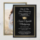 Compartilhe a alegria de uma formatura do ensino médio ou faculdade com esses anúncios personalizados em preto, dourado e branco. (DICA DE POSICIONAMENTO DE IMAGEM: Uma maneira fácil de centralizar uma imagem exatamente como você deseja é cortá-la antes de fazer o upload para o site da Zazzle.) Este modelo de estilo formal inclui os nomes dos pais e do graduado, bem como qualquer texto de sua escolha, como detalhes do convite da festa, honrarias especiais, título do diploma, citação inspiradora favorita, informações de contato do graduado, planos de educação futura ou novo cargo. Todo o texto é fácil de personalizar. O design apresenta uma borda moderna com efeito de folha de ouro, uma gorro de formatura, caligrafia elegante, tipografia tradicional e uma foto de sua escolha, como uma foto de formatura ou imagem da cerimônia de formatura. Por favor, note que o dourado é uma cor impressa, não folha metálica. Esses cartões de anúncio de formatura são uma maneira moderna e sofisticada de compartilhar a celebração do