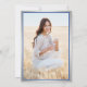 Compartilhe a alegria de uma formatura do ensino médio ou faculdade com esses anúncios personalizados nas cores azul real, branco e prata. (DICA DE POSICIONAMENTO DA IMAGEM: Uma maneira fácil de centralizar uma imagem exatamente como você deseja é cortá-la antes de fazer o upload para o site da Zazzle.) Este modelo de estilo formal inclui os nomes dos pais e do formando, bem como qualquer texto de sua escolha, como detalhes do convite da festa, honrarias especiais, título do diploma, citação inspiradora favorita, informações de contato do formando, planos de educação futura ou novo cargo. Todo o texto é fácil de personalizar. O design apresenta um fundo azul ombre moderno, borda de folha de prata falsa e boina, caligrafia elegante, tipografia tradicional e uma foto de sua escolha, como uma foto de formatura ou imagem da cerimônia de formatura. Por favor, note que a prata é uma cor impressa, não folha metálica. Esses cartões de anúncio de formatura são uma maneira moderna e elegante de compartilhar a celebração do seu dia especial com familiares e amigos. Parabéns ao