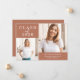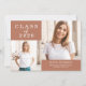 Este cartão de anúncio de graduação simples e na moda apresenta duas das suas fotos pessoais favoritas da classe do formando 2025, juntamente com texto elegante clássico e script em um fundo colorido boho terracotta para um incrível olhar minimalista.
