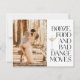 Avise aos seus convidados que a festa será divertida com este casamento engraçado, salve o cartão postal. Apresentando sua foto favorita e a linha icônica "Booze, comida e maus movimentos de dança", este moderno design preto-e-branco é perfeito para casais que querem mantê-lo real, na moda e inesquecível. Fácil de personalizar, simples de enviar — seu dia de sonho começa aqui.