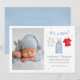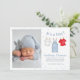 Apresentando o seu pequeno nunca foi mais fofo com este cartão de nascimento de menino! Apresentando um layout minimalista de fotos de bebês, esta design destaca suas estatísticas de recém-nascidos ao lado de uma citação divertida de "É um Menino". Adorado com macacos azuis em uma armação de roupas encantadora, o cartão combina tipografia química com um tema patriótico vermelho, branco e azul. Perfeito para novos pais, é uma maneira divertida e criativa de compartilhar sua alegria!