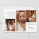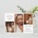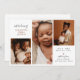 Crie o seu novo e maravilhoso anúncio de bebê/obrigado de chá de fraldas, seu cartão de colagem fotográfico para obrigados amigos e familiares por receber seu pequeno. O elegante e minimalista design apresenta uma colagem de três fotos personalizadas e uma tipografia elegante. No verso, há uma mensagem personalizável. Torne-o exclusivo substituindo o texto e as imagens clicando no botão "Personalizar".