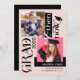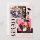 Anúncio de graduação moderno e simples para honrar o formando e refletir sobre sua jornada. Usando um layout de duas fotos para mostrar imagens graduadas de ambos os anos, o design combina um estilo moderno de na moda com memórias do passado. O gráfico é rodeado por na moda de tipografia ousada que diz "Formando", "Agora" e "Futuro". Personalize ainda mais com o nome do formando, o ano de graduação e a escola na frente e os detalhes da Festa de formatura no verso.