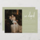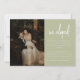 Anúncio de foto moderna de casamento 'Nos Fugimos' em verde sage. Personalize este cartão de anúncio de fuga de casamento minimalista e elegante com uma foto de casamento favorita, sua mensagem para amigos e familiares, e as iniciais da noiva e do noivo no verso.