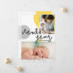 Anuncie o nascimento do seu bebê e deseje a todos uma Feliz ano novo com este cartão plano de anúncio personalizado de nascimento de bebê. Personalize este modelo design com cores amarelas e cinzas modernas com a fotografia da sua família e a fotografia do recém-nascido. Edite as estatísticas de natalidade, o endereço de retorno, o nome e a saudação especial no verso deste cartão. Tipografia moderna para as palavras "Novos Começos de Ano Novo".