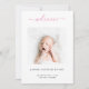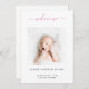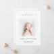 Esta placa simples personalizada de anúncio de nascimento de fotos, encantadora, apresenta um design contemporâneo que permite personalizá-la facilmente de acordo com o seu estilo. Escolhemos cantos nítidos padrão como a configuração padrão de forma, mas você pode facilmente mudar a aparência para cantos arredondados, pois essa aparência também funciona maravilhosamente com esta design. Tente os dois no modo de edição e veja qual é a sua capacidade! Demos a esta design minimalista um salto de pântano com "bem-vindo" acima da foto em uma fonte moderna que flui e consegue ser elegante e brincalhão ao mesmo tempo. Adoramos o florescimento estilizado e alongado em ambas as extremidades da palavra que acrescenta ao seu talento caprichoso. Para destacar este aspecto do design, escolhemos uma alegre sombra cor-de-rosa para o roteiro 'bem-vindo'. Mas, por favor, sinta-se à vontade para mudar a cor ou para mudar a mensagem para o que quer que lhe agrade o rico, seja ele 'apresentar' ou 'olá, mundo!', etc. Se você quiser destacar sua gratidão por um presente e fazer deste um cartões de agradecimentos, você pode editá-lo para mostrar 'obrigados tanto!' ou 'obrigado você' ou sentimentos semelhantes. E, em qualquer caso, você pode incluir sua gratidão em uma pequena mensagem nas costas. Você pode mudar a cor e a fonte deste ou de qualquer outro texto de acordo com o seu gosto. A cor padrão do nome e dos detalhes na frente é um preto ligeiramente suavizado, e a cor padrão do texto marcador de posição na parte traseira é um tom de cinza escuro que é majoritariamente preto. Se preferir uma aparência mais minimalista, você pode excluir sem substituir nenhuma de nossas estatísticas de amostra na frente - talvez não queira incluir a hora do dia ou a duração, por exemplo. Nós definimos o plano de fundo de ambos os lados como transparente, para que a cor do seu papel sirva simplesmente como o tom base. Você pode mudar isso em um ou em ambos os lados escolhendo uma cor. Na parte traseira, adicionamos um texto de espaço reservado para que você substitua por sua própria mensagem. Você pode alterar a fonte e a cor do texto. Depois de excluir nosso texto de marcador de posição, você pode simplesmente deixar o vazio de trás completamente, para que possa adicionar uma mensagem manuscrita com suas assinaturas depois de receber seus cartões. Em qualquer caso, lembre-se de remover todo o texto do marcador de posição, assim como nossa foto de amostra! O tipo de papel padrão, matte, tem um calor suave e resiste a manobras, então é uma escolha excelente para escrevendo sua própria mensagem. Use as ferramentas intuitivas de design, sua foto favorita e sua inspiração para personalizar esta placa simples de anúncio de nascimento personalizada e torná-la exclusivamente sua!
