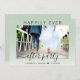 Convite de casamento ou elopamento verde chic sage ou convite de casamento privado e recepção ou festa de celebração. A frente apresenta sua foto, "Festa Feliz para Sempre" em tipografia simples e um script moderno com floreios, e seus primeiros nomes e data de casamento. No verso, você pode personalizar seu anúncio de casamento e convite com mais detalhes e adicionar seus nomes em um script semelhante a uma assinatura.