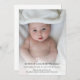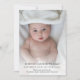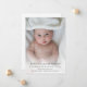 Um simples design de fotos personalizado moderno para apresentar o novo bebê a todos aqueles que enviaram seus parabéns. A elegante design é excelente para notificar pessoas da chegada do bebê. Aqueles que enviaram seus parabéns e assistiram ao chá de fraldas adorariam ouvir as notícias felizes. Substitua a imagem por uma imagem vertical do recém-nascido. O texto pode ser personalizado e personalizado com os nomes dos pais e do bebê. Você pode alterar a fonte, a cor da fonte e o tamanho da fonte usando a Ferramenta Design. Este novo design de bebê é seu para personalizar e personalizar como quiser. A design de anúncio de nascimento neutro em termos de gênero é adequada para um bebê ou uma menina.