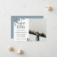Cartão de Save the Date de casamento com flores de aquarela azul empoeirado e folhagem botânica de jardim. Projetado para combinar com nossa Coleção Botânica Azul Empoeirada.