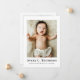 Compartilhe sua alegria com este atemporal anúncio de nascimento minimalista, cartão de agradecimento de recém-nascido. Apresentando uma foto completa na frente com estatísticas de nascimento limpas e uma mensagem sincera no verso, é o presente perfeito para amigos e familiares. Ideal para pais modernos que amam design simples e elegante e papelaria significativa. Totalmente personalizável para fotos, nomes, datas e sua mensagem pessoal.