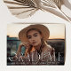 Anuncie sua formatura com estilo com nossos convites de formatura com fotos modernas. Os convites de formatura simples apresentam sua foto horizontal favorita de finalista com "Graduado" exibido em uma sobreposição de texto branco moderno. Personalize a frente dos convites de formatura modernos adicionando o nome do graduado, nome da escola e ano de formatura. O cartão reverte para exibir um design listrado preto e branco.