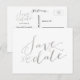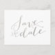 Glamour de Folha de Prata Falsa Impressa | Cartão Postal de Save the Date de Casamento. Elke Clarke © Outras cores disponíveis em www.zazzle.com/monogramgallery. Um simples, porém versátil, cartão de save the date prateado com letra manuscrita para casamentos ou outras ocasiões especiais, como jantares de ensaio, chás de casal, celebrações de aniversário de 25 anos de casamento. A folha de prata é um efeito de foto impressa.