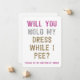Proponha à sua festa noiva com este cartão glamouroso e brilhante que diz: "VOCÊ MANTERÁ MEU VESTIDO ENQUANTO EU PEÇO? POR FAVOR, SEJA MINHA MATÉRIA DE HONRA." Personalize com uma mensagem sincera nas costas. A brilhante cor-de-rosa, prata e dourada é impressa em formato plano. Opte por uma forma direta ou papel texturizado para torná-lo mais especial para suas meninas :)