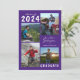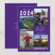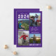 Convite de formatura editável em roxo e branco com quatro fotos e o nome do formando em uma fonte de letra manuscrita. O ano da turma pode ser alterado, assim como o estilo da fonte do texto, cor, tamanho e posicionamento. O verso tem um campo de texto opcional para incluir informações adicionais sobre o formando (exclua o texto de exemplo nesse campo se não desejar).