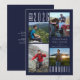 Anúncio de graduação em azul e branco, moderno e minimalista, com edição marinho, com uma colagem fotográfica de 4 fotos do seu segundo grau ou formando universitário. Observe que o ano da classe pode ser alterado para qualquer ano e o fundo pode ser alterado para outra cor ou cor favorita da escola. O verso tem um campo de texto opcional para incluir informações sobre seu formando (exclua o texto de amostra nesse campo se não desejar). ASSISTÊNCIA: para obter ajuda com a modificação/personalização do design, alteração de cor, transferência do design para outro produto ou, se você quiser coordenar itens, entre em contato com o designer ANTES DE ENCOMENDAR através da guia MENSAGEM de bate-papo Zazzle ou por e-mail em makeitaboutyoustore@gmail.com.