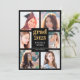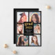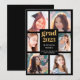 Envie a sua família e amigos um cartão moderno personalizado de graduação de colagem de fotos para os exultar. Este modelo moderno apresenta seis fotos para você mudar para o seu próprio enquadramento em preto. No centro em ouro falso e tipografia branca está a palavra "Formando" com o ano, o seu nome e escola para personalizar. A parte de trás da carta é preta. Desenhada por Susan Coffey.