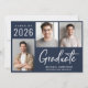 Anúncio de graduação em azul-marinho escuro moderno com 3 fotos e "Formando" em um roteiro branco ousado contemporâneo. Adicione o nome do formando, ano de aula e escola ou universidade em tipografia branca simples.