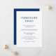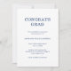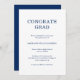 Cartão de anúncio clássico de graduação em azul e branco marinho com um design simples e minimalista com "Formando de Parabéns" e o nome do formando em negrito. A parte de trás é um azul marinho sólido. Um cartão de anúncio tradicional com um toque masculino para um formando de menino.